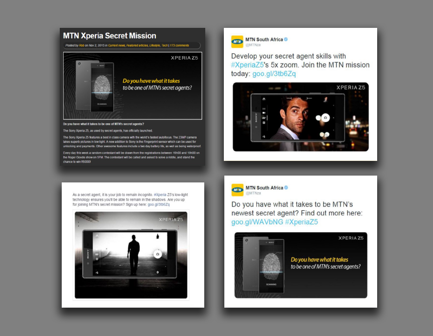 The Sony Xperia™ Z5 was the phone 'Made for Bond' and its launch coincided with the release of Spectre in South Africa. Using international guidelines as a base, we were tasked with the exciting job of creating launches, activations, in-store material, digital campaigns based around microsites and social media, VIP screenings, preview events, TVCs and billboards, plus creating and managing competitions with operators and radio stations.