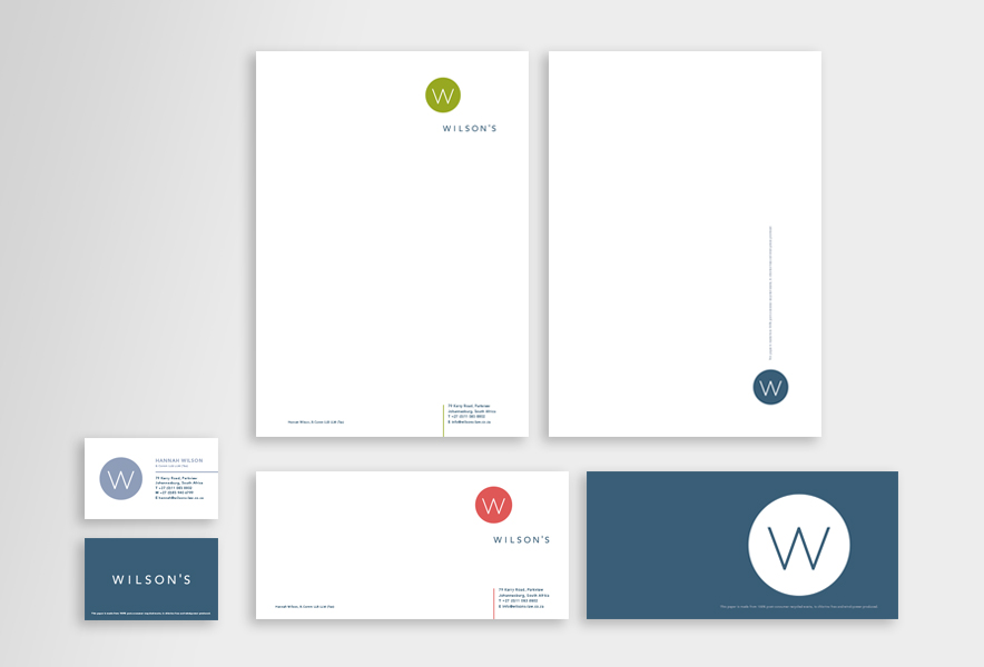 As luck would have it, when Hannah Wilson – an estate planning lawyer based in Johannesburg – came to us for a new corporate identity, her brief to us was that she wanted something worlds apart from the usual law firm look. We decided to capture her personality through her logo: professional, bold, unique and creative.